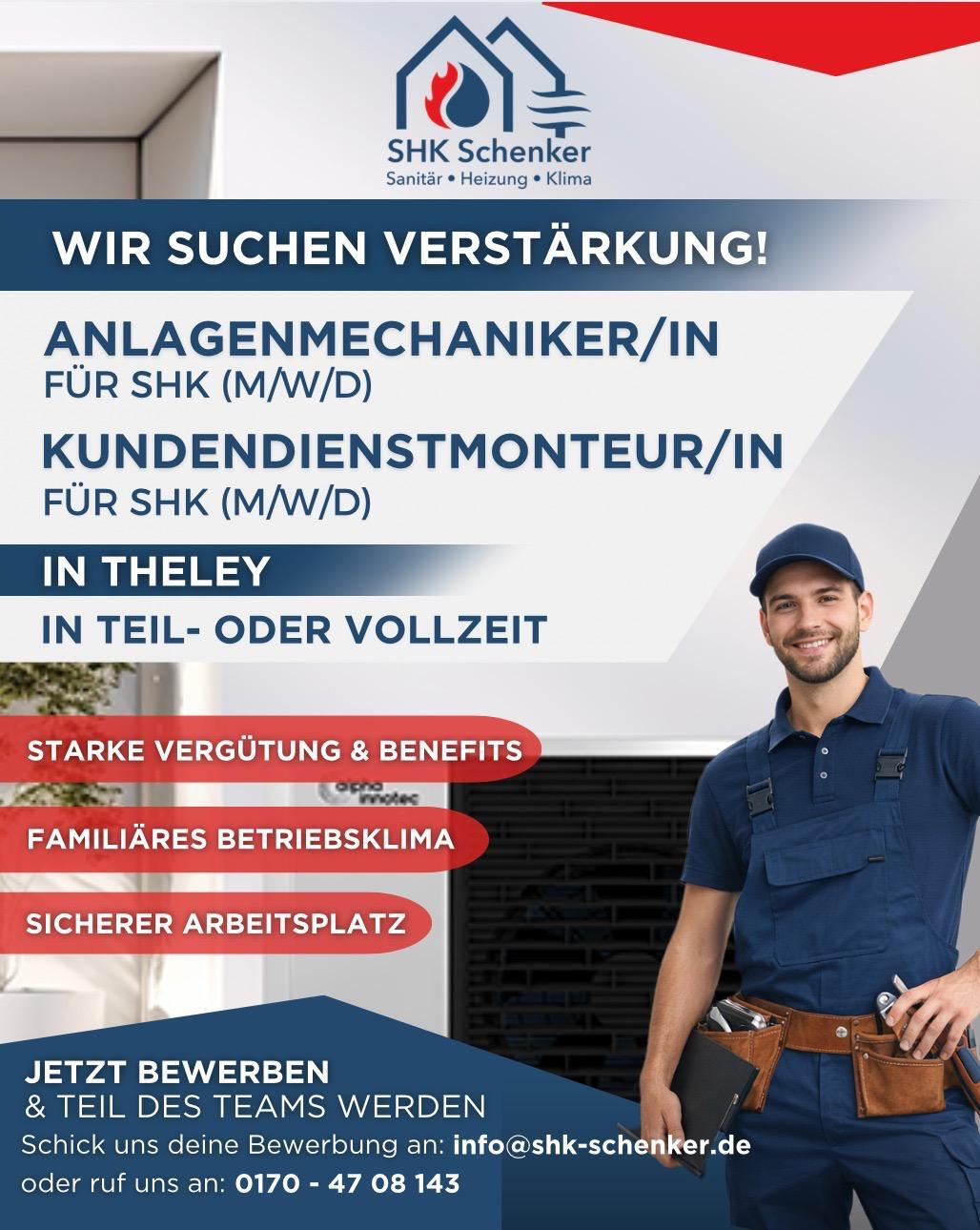 Du bist Anlagenmechaniker/in (m/w/d) oder Kundendienstmonteur/in (m/w/d) für SHK und suchst eine neue Herausforderung? Dann komm in unser Team! Wir stehen für modernes Handwerk, faire Arbeitsbedingungen und echte Wertschätzung. Jetzt bewerben und Teil eines starken Teams werden!